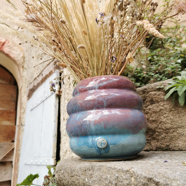 Ce vase est idéal pour accueillir des bouquets de fleurs, des branches décoratives ou même comme pièce décorative à part entière. Ses courbes généreuses et ses teintes poétiques apportent une touche d'élégance bohème à votre décoration.